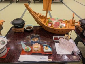 宿泊は太平洋を望むオーシャンビューのホテル。夕食では新鮮な海の幸を堪能し、温泉で日ごろの疲れを癒すことができました。